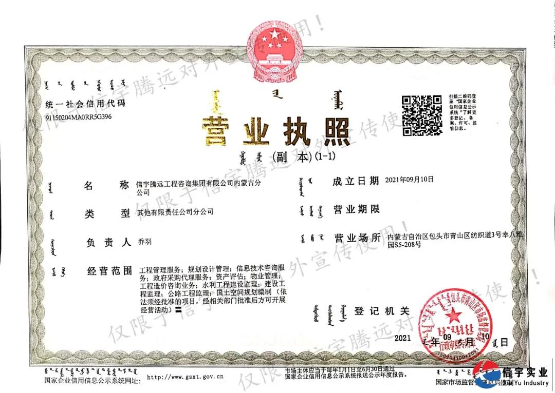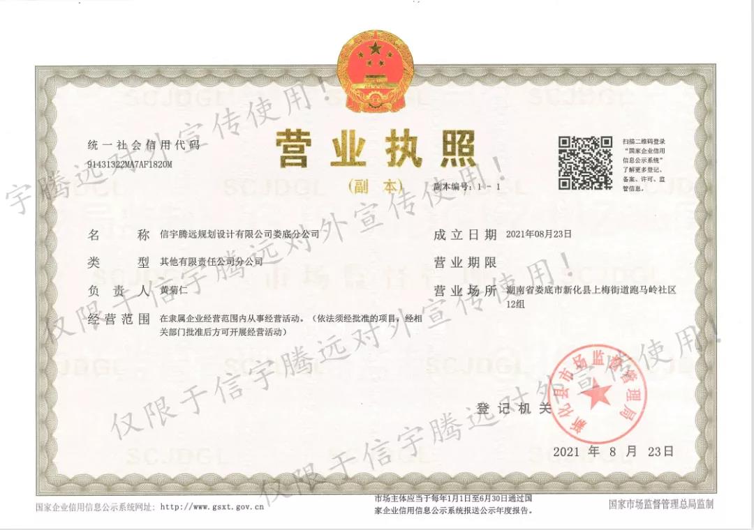 信宇騰遠(yuǎn)工程咨詢(xún)集團(tuán)有限公司內(nèi)蒙古分公司、信宇騰遠(yuǎn)規(guī)劃設(shè)計(jì)有限公司婁底分公司都已順利注冊(cè)成功。